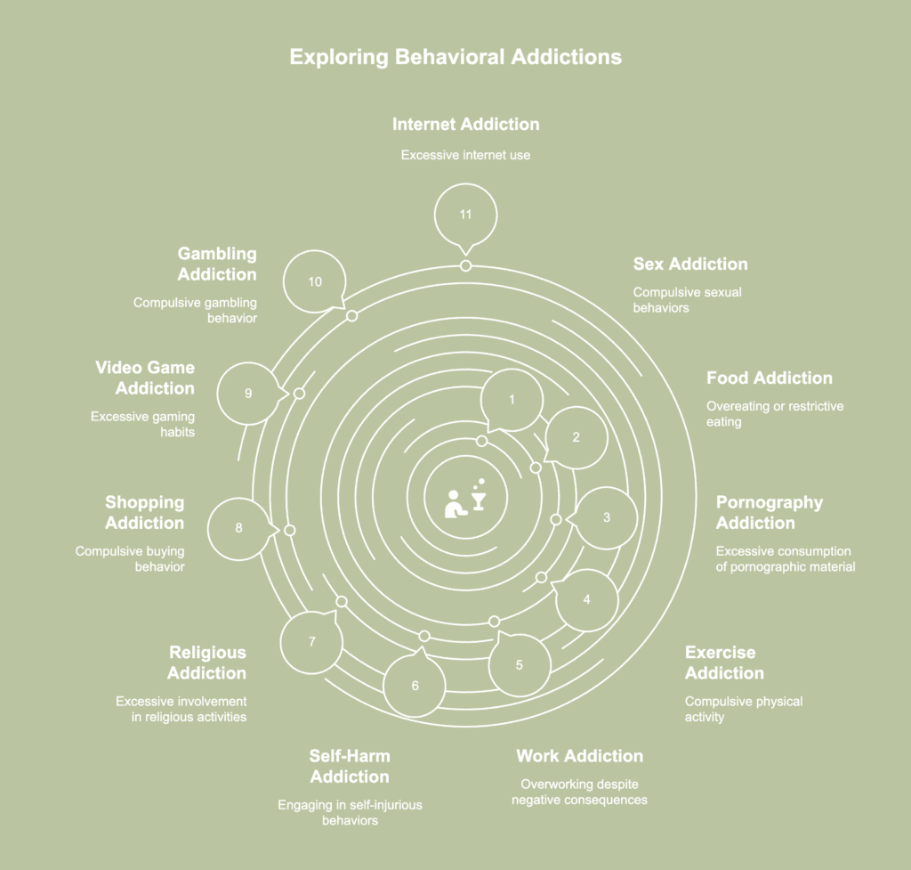 21 different addiction types: physical, behavioral, and impulse control disorders