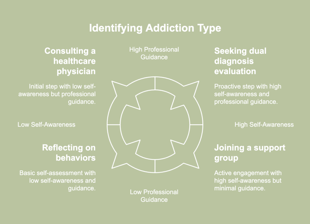 - Take action: After identifying the type of addiction, take proactive steps to address the issue. Actions include seeking professional treatment, joining a support group, altering your lifestyle, or developing strategies to manage cravings and triggers.