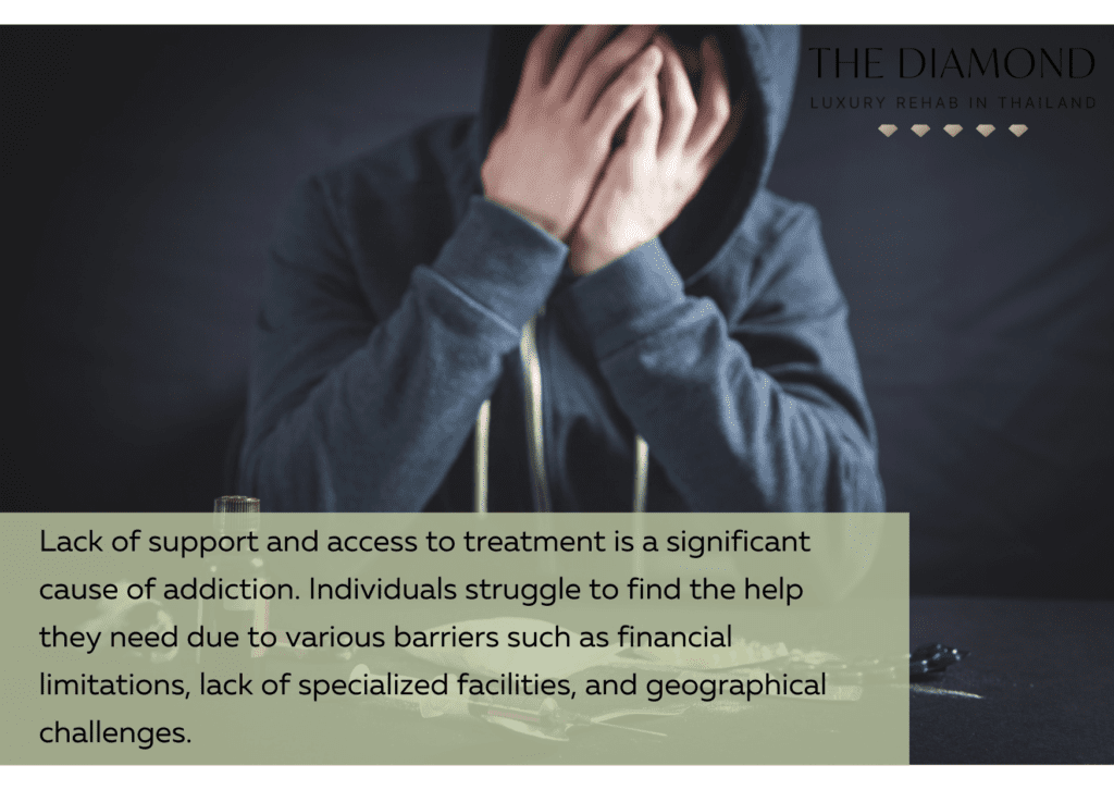 Lack of support and access to treatment is a significant cause of addiction. Individuals struggle to find the help they need due to various barriers such as financial limitations, lack of specialized facilities, and geographical challenges.