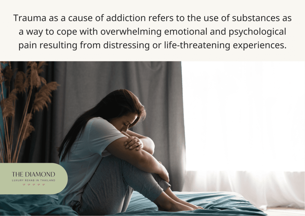 Trauma as a cause of addiction refers to the use of substances as a way to cope with overwhelming emotional and psychological pain resulting from distressing or life-threatening experiences. These substances, such as drugs or alcohol, are often employed as a way to numb or escape trauma-related symptoms, but over time, this coping mechanism evolves into dependency and addiction. Common examples of traumatic events include physical or sexual assault, life-threatening situations, unexpected loss of a loved one, violence, or exposure to war.